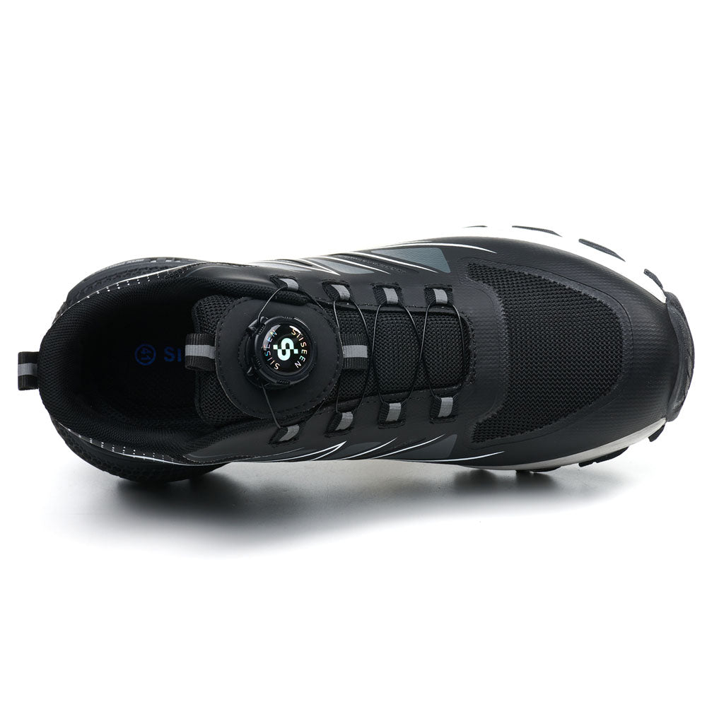 Sleek,modern design with breathable mesh lining and cushioned insole for superior comfort,blending workplace safety with everyday casual fashion.