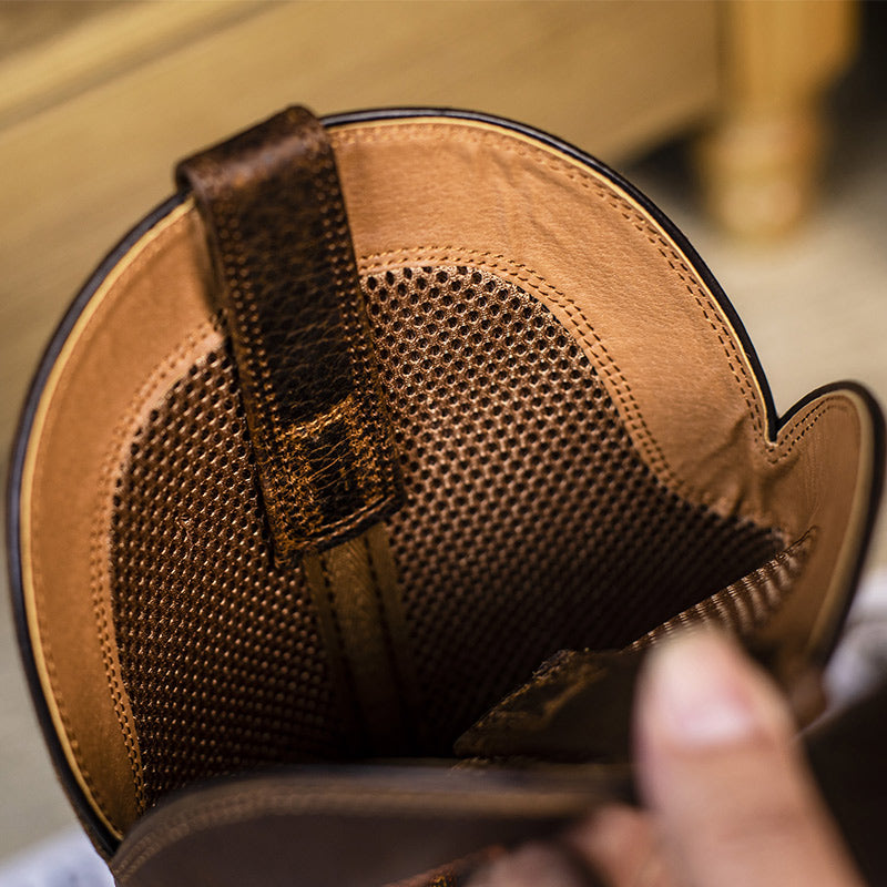 • Upper: Hand-stitched cowboy boots crafted from premium full-grain cowhide leather, ensuring durability and sturdiness.