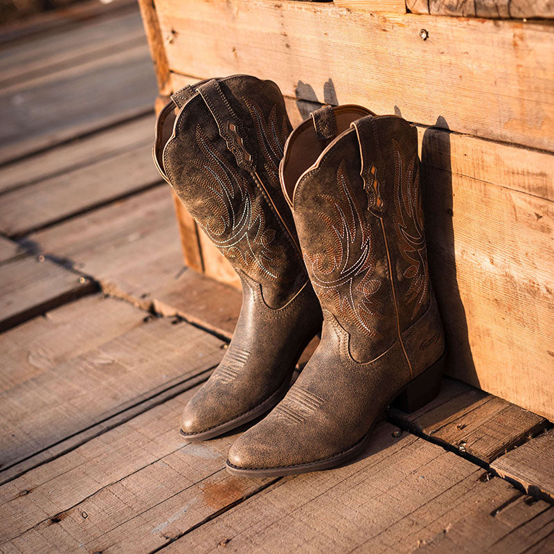 Pointed Toe Ladies Leather Cowboy Boots - Stylish Western Boots